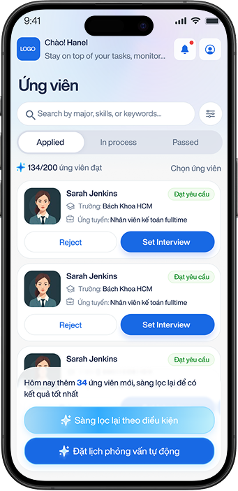 Tổ chức phỏng vấn, giao tiếp với ứng viên và theo dõi tiến độ tuyển dụng tại một nơi.