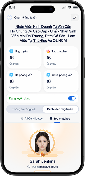 Để AI phân tích hồ sơ và tạo điểm ứng viên, thông tin tương thích và đề xuất tuyển dụng.